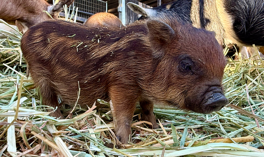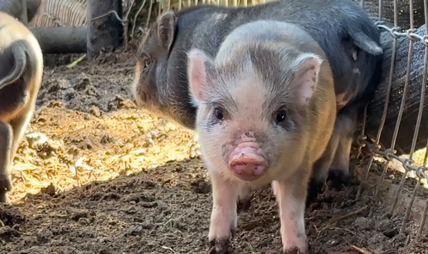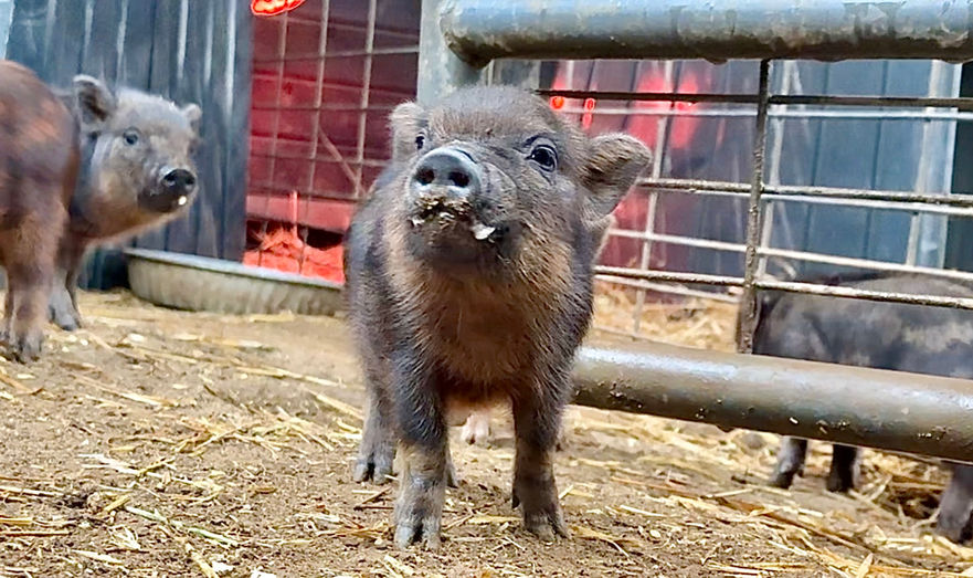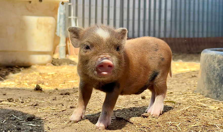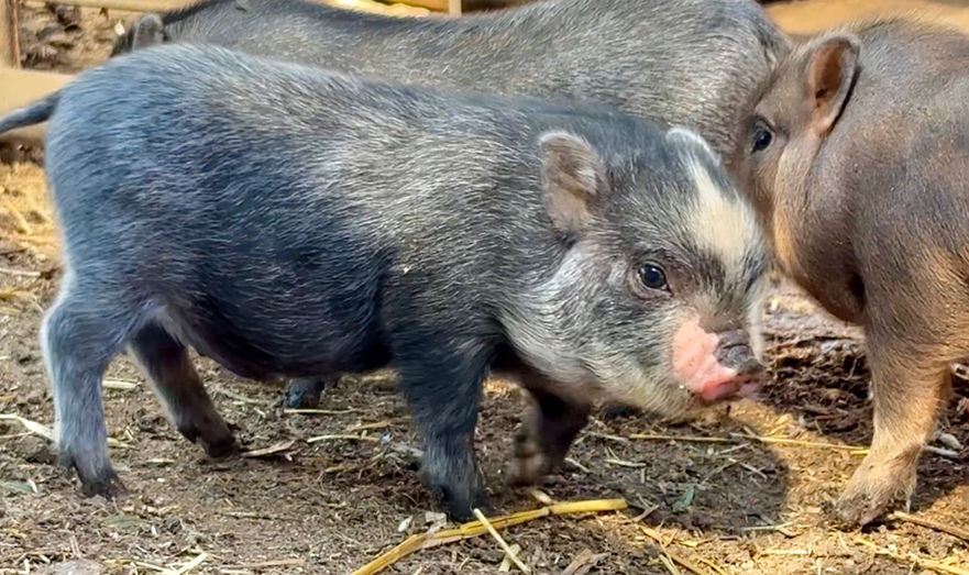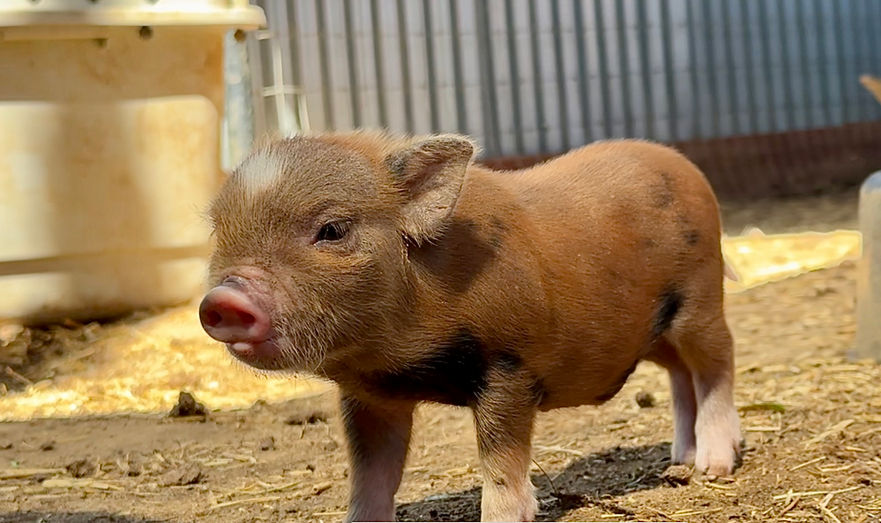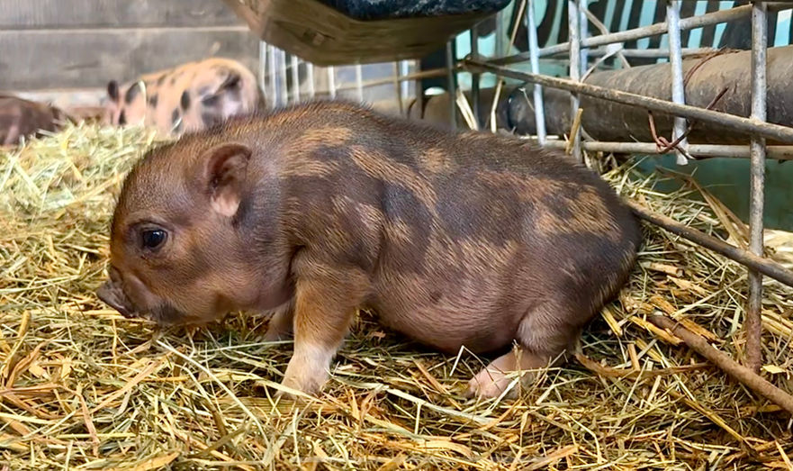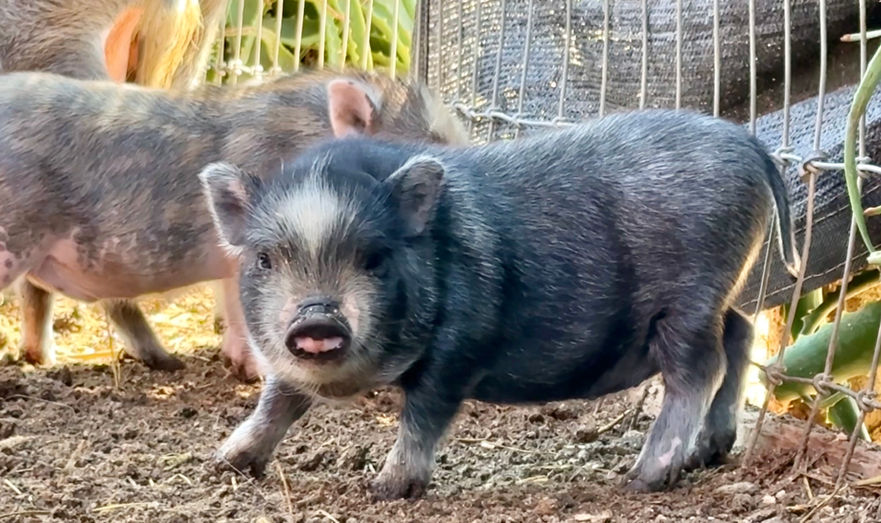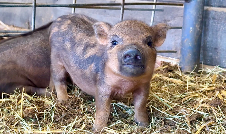 Please Note: Piglet colors and eye color can change as they grow! Their coat may lighten, darken, or develop new markings over time due to age, seasons, and natural pigmentation changes. Similarly, a piglet’s eye color may shift as they mature. Because of this, we cannot guarantee that a piglet’s coloring or eye color will remain the same as they age.